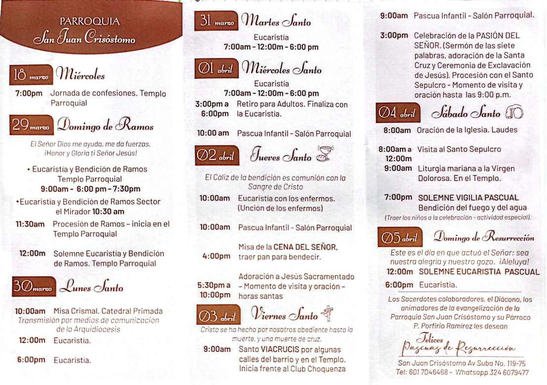 Programación de Semana Santa 2026. Participemos de los misterios de la Pasión, muerte y Resurrección de Nuestro Señor Jesucristo.